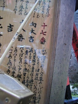 向大吉。こんな感じの無料おみくじが置いてある塚もたくさんありました。
