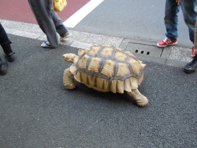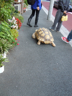 月島では亀がお散歩をしていました。いつまで見送っても、あまり遠くへは行きません。