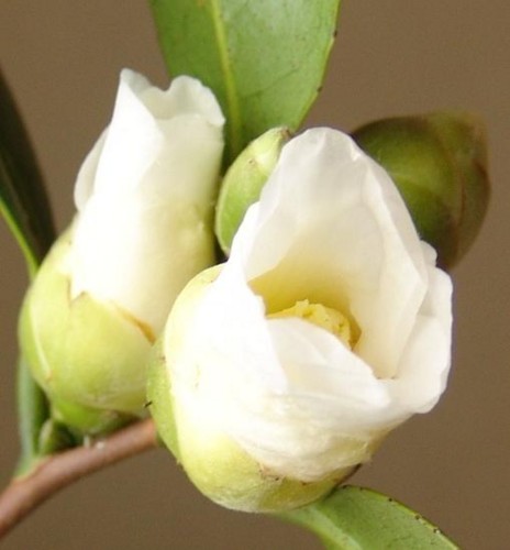 庭の「乙女椿」の葉が、この寒さでがちがち。