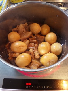 豚バラとゆで卵を煮てます(西では炊く、と言うのかな?)