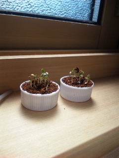 ペットボトルのキャップ菜園(お茶のオマケ)