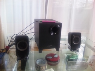 寝室に置いてあったスピーカーをリビングに持ってきて自分のnanoを繋いでランダムに再生。