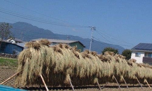はざにかけてある稲