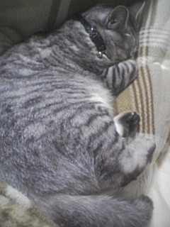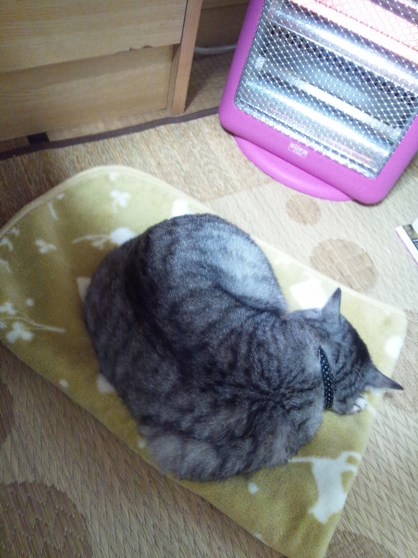 けど、お猫さまが気持ちよさそうに寝てるから布団から出るのを躊躇うなぁ・・・曇天だから布団も干せないしなぁ。