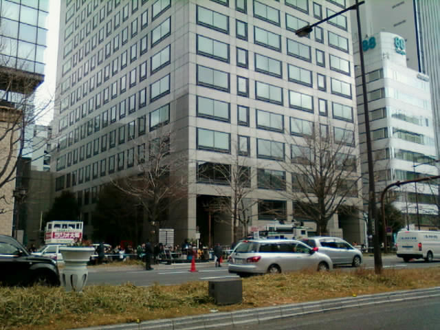 その後なんとか撮った写真も、遠すぎて、かろうじて中継車がわかる程度…