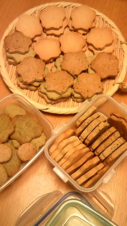 今日は予定どおり黒胡麻クッキーを焼き足しました。黒すり胡麻は倍量でも良かった気もしますが、ともあれこれで明日、よもぎ・さくら・黒胡麻の三色クッキーセットが組めます。