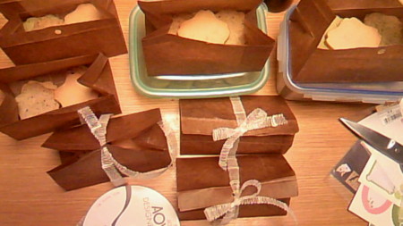 いつもより一時間早く起きて、焼いては冷まして冷凍保存してきたクッキーと、昨夜焼いて冷ましておいたクッキーを梱包。
