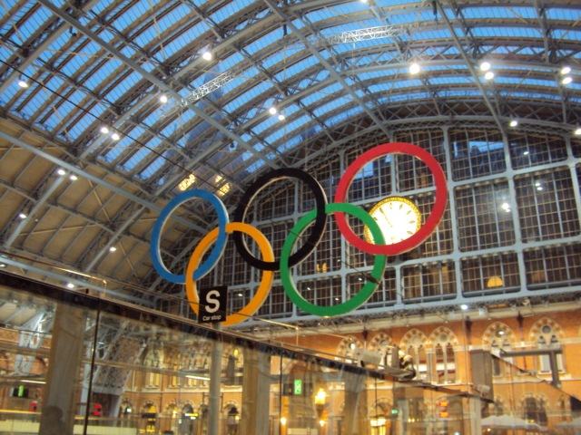 この日の最後に訪れた国際駅であるセント・パンクラス駅にはこうした五輪が掲げられており、準備は進んでいるのも事実です。
