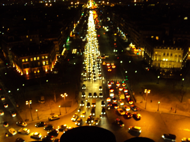 真下を覗くと、こんな感じで車の渋滞ぎみが通りの明るさを引き立てているということに気づきます。