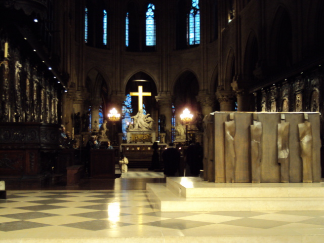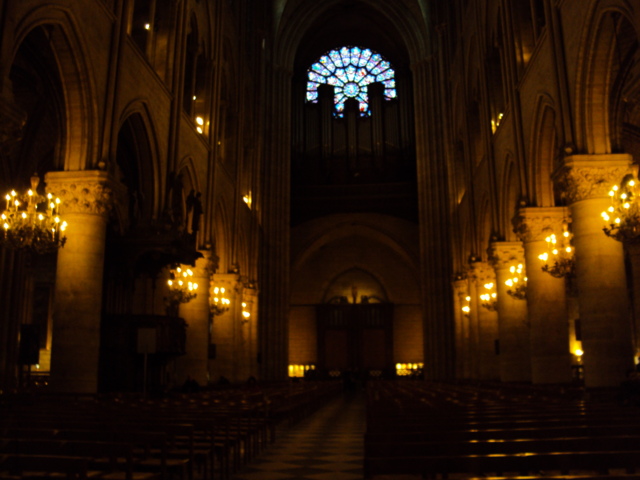 教会の内装はノートルダム大聖堂などと比べるとシンプルで、軍旗(?)がならぶ程度である。