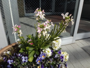 つぼみをとってきて、暖房のある部屋で咲かせた梅の花。