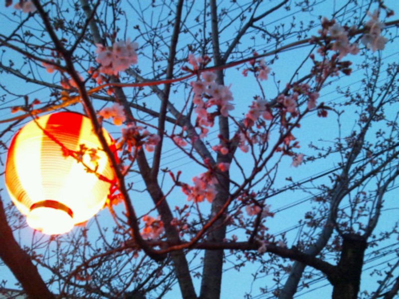 通勤経路の9割りを占める桜並木道に、提灯が下げられていよいよシーズン到来。