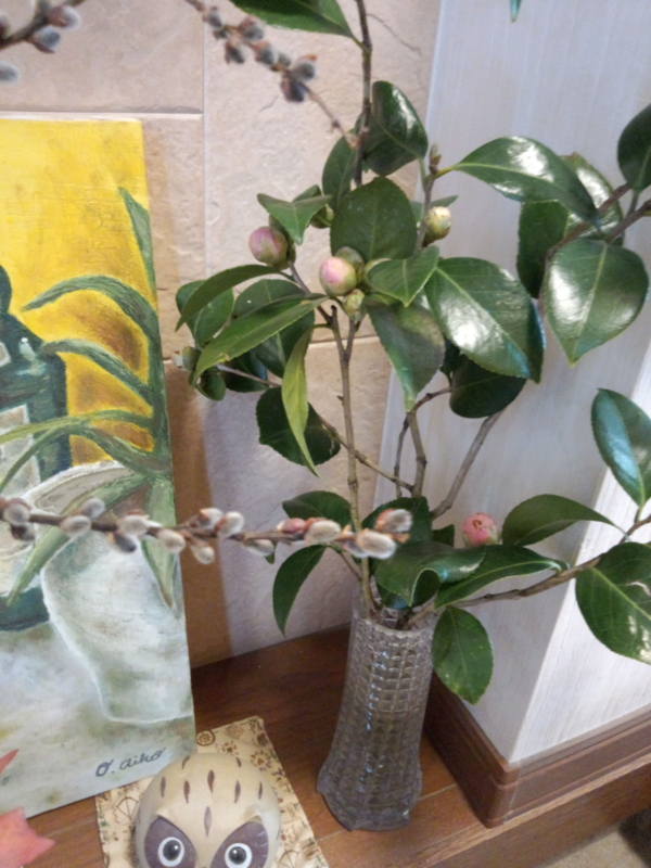 「乙女椿のつぼみ」・・・つぼみがピンク色に。