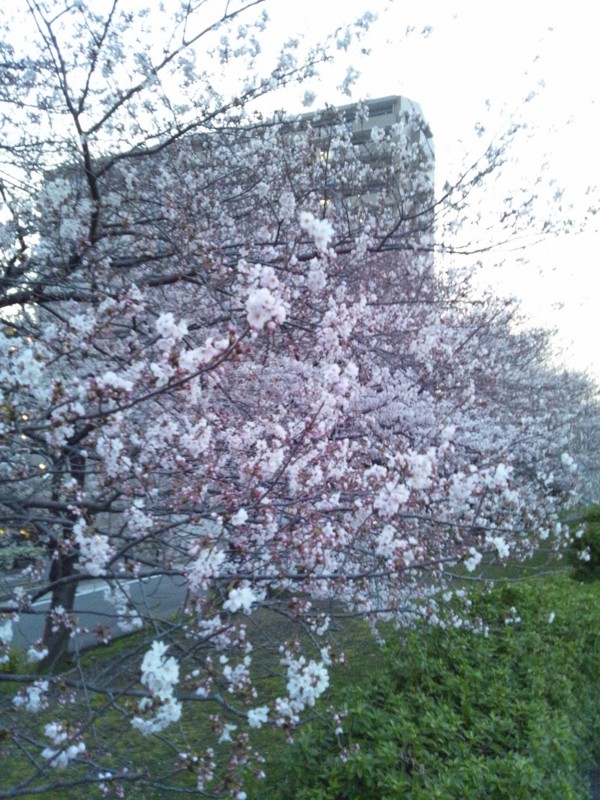下にいっぱい着込んで夜ウォーキングに出たら、寒くて流石に花見をする人もほとんどいなかった。
