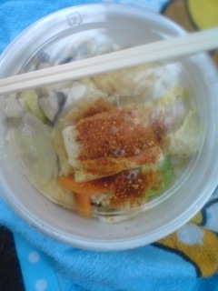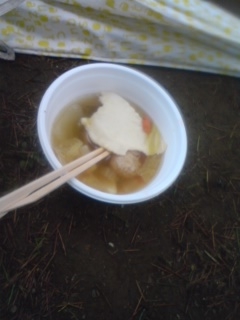 選手の保護者の方々が鹿児島の特産品を振る舞っていたので、芋焼酎をいただきました。