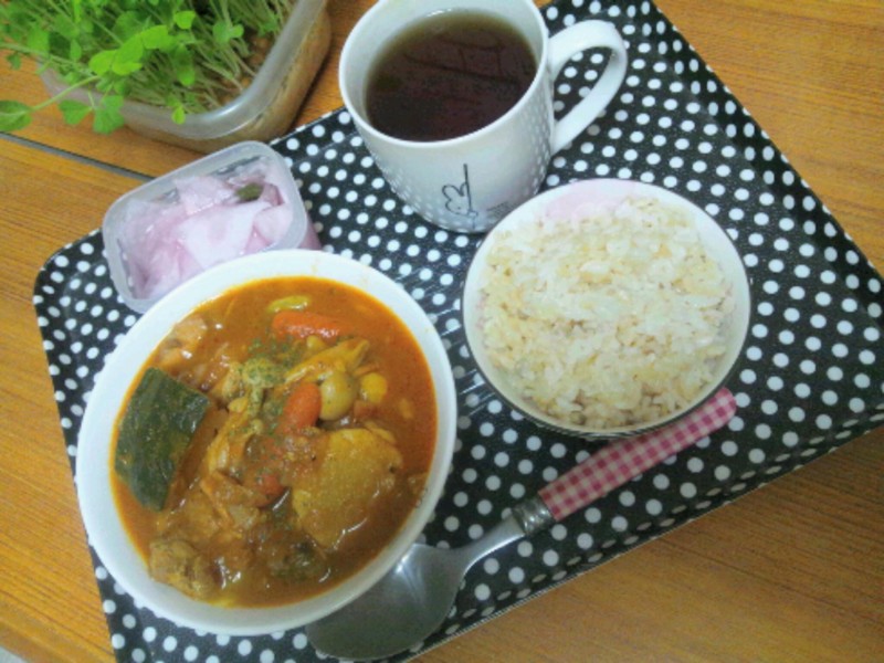 掃除洗濯布団干しして、姪っこズにバッグを作りつつスープカレーを煮込んで、買い物へ。