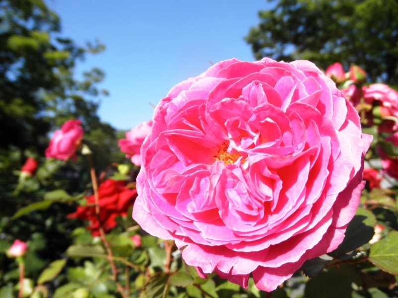 入口近くの、ローズアベニューにて。品種はちょっとわかりません。