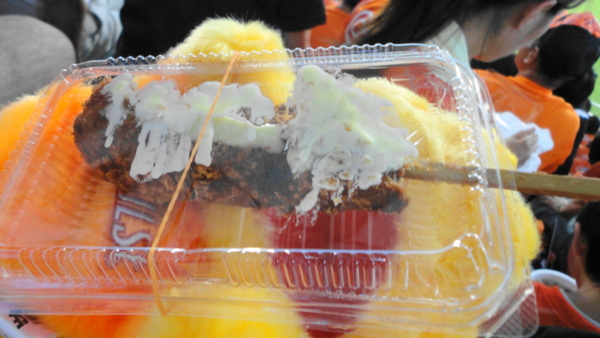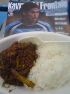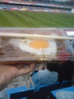 空腹に絶えかねてハーフタイムに平らげたフェイジョアーダライス(正式名称忘れた)とブラジル風ソーセージ、