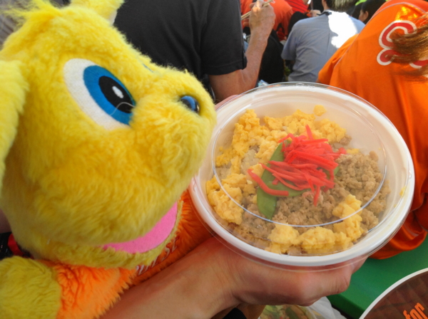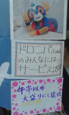 深川めし屋さんに、ドロンパの可愛いメッセージがありました。