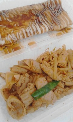 オムライス焼きそばと、汁かけタイプの深川めしです。味がしっかりついていて、おいしかった〜