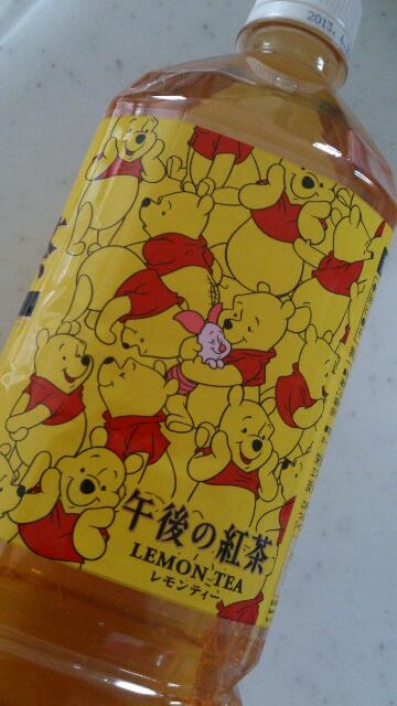 午後ティーのペットボトルにプーさんがいっぱい(=´∀`=)