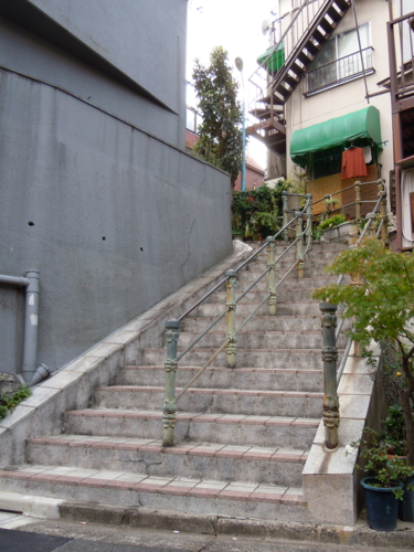 神楽坂は坂が有名。ちょっとショートカットの階段もいいかんじ。