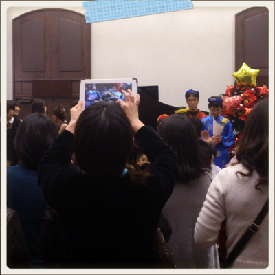 デジカメ、ビデオ、スマホ、iPadなどなど、あらゆる機器を駆使して我が子の晴れ姿を残そうとするのを後ろから見守ってます←