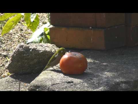 大きな熟柿を庭石の上に置いてやっても、まる一日経つと影も形もなくなってる。どんだけ食べてるねん。