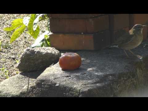 たぶん「つぐみ」可愛いから枝にミカンをプレゼントした。