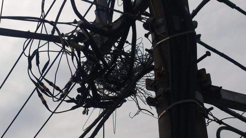 家の前の電柱にカラスが巣作りを始めちゃいました(-ω-)