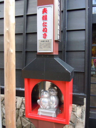 さて、この通りには街路灯にそれぞれたぬきさんがおいでになって、みんな揃って12体。何かご利益があるそうで…。