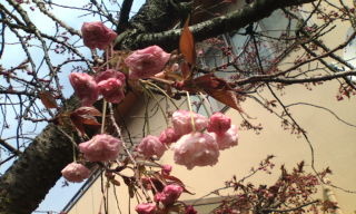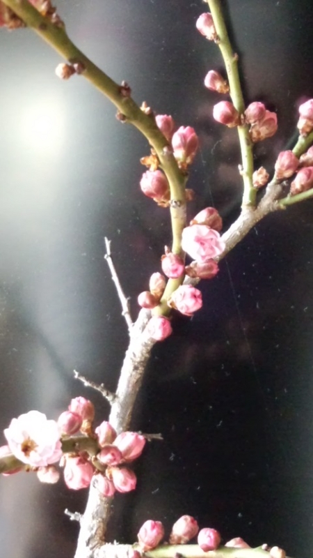 四日前に裏の林からとってきた桜が、何輪か咲きはじめました。