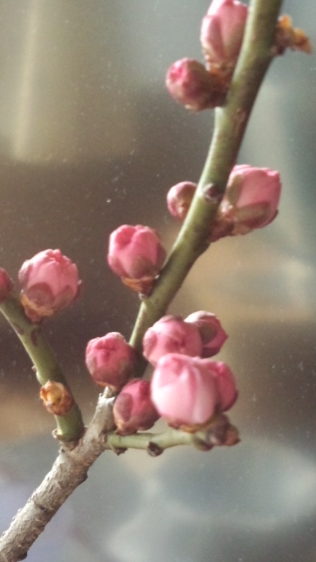 二日前、裏の林からとってきた桜のつぼみ。