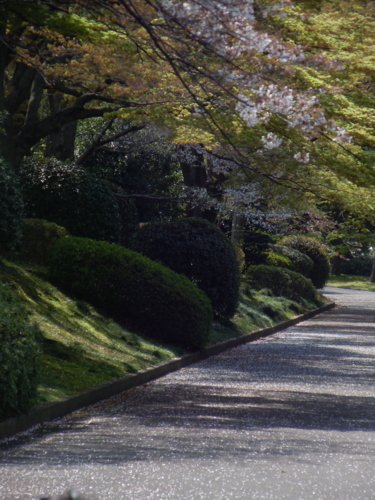 そういえば警察官の方の1人が「桜はこの先、まだ咲いています。門を出てからもきれいに咲いています。」と葉桜に執拗にシャッターを切って渋滞する私たちにおしえてくれていたっけな。