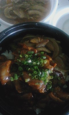 笑い豚のソーセージとあい鴨の三色丼。