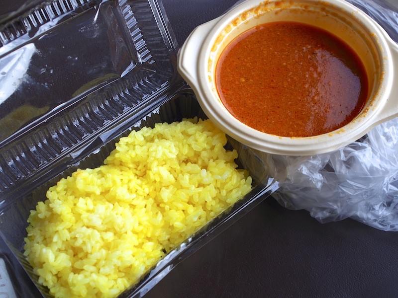 本日フクダ電子アリーナでいただいたのは、サマナラのサフランライスとチキンキーマカレー。
