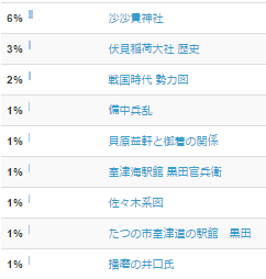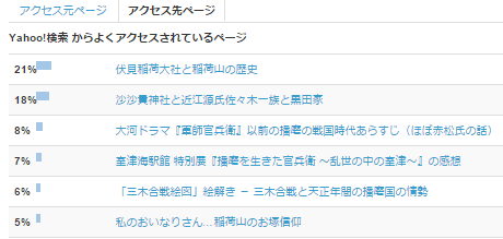 21%が「伏見稲荷大社と稲荷山の歴史」、18%が「沙沙貴神社」。相変わらず謎の強さ…。