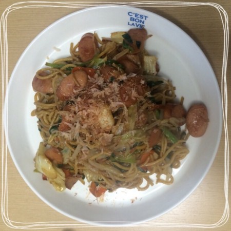 久しぶりにナポリタン。慣れてないからちょっと具がいい加減。もうちょっとケチャップを多くしてもよかったな。