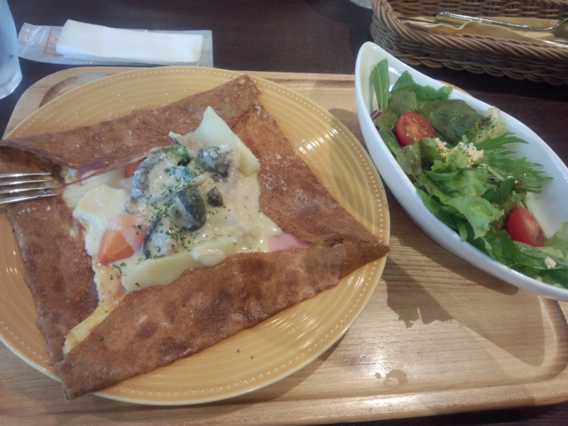 うどん屋さんで冷や玉うどんとヨモギとレンコン