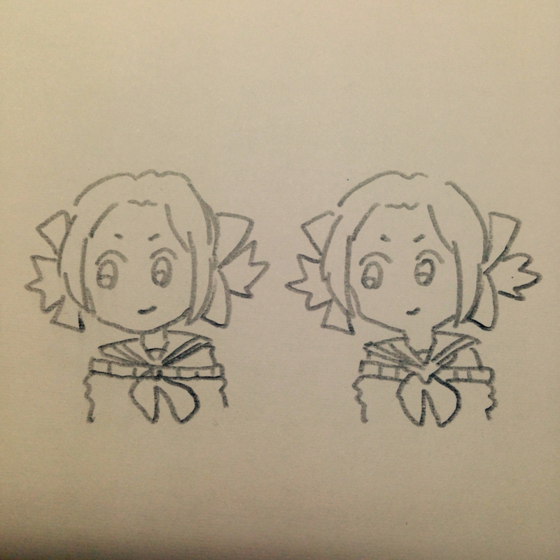 あんまり自分の絵だとわかりにくいんだけど、この描き方が何故かすごく魅力的に思える。顔の角度にもよるとは思うんだけど、意識して描きたいところ。