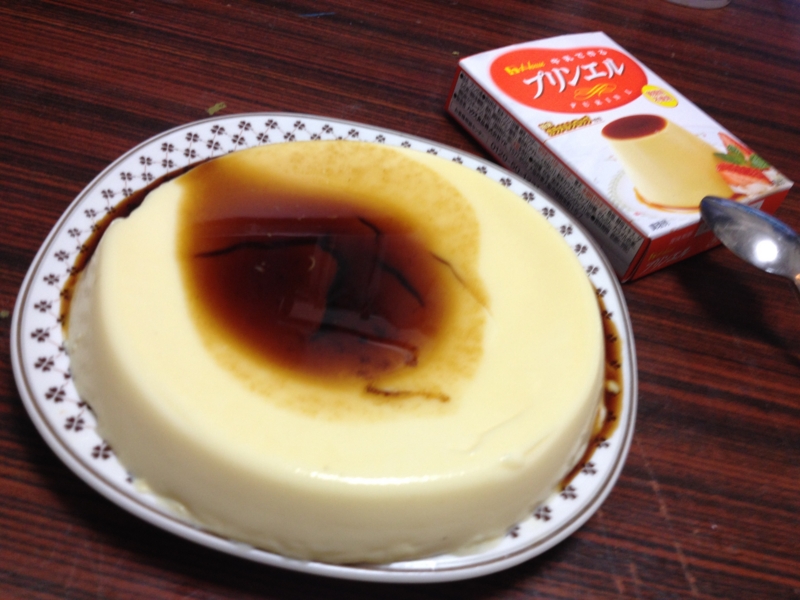 ハウスのプリンエル、これもひさびさでしたが美味しいですね。このあとわたくしがおいしくいただきました。(シロップを流したら文字が浮き出るかなとナイフで「プリン」と彫ったんですが、ぐちゃぐちゃになっただけでした。)