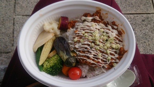 古い大きな民家を再生した建物にあるダイニングでお昼ごはん。これにデザートのかぼちゃのシフォンケーキみたいなのと紅茶を飲んでお腹いっぱい。夜は軽くしようと思うくらい。