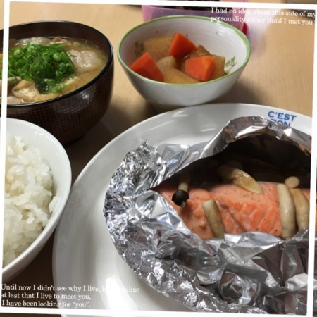 今日のまこうさランチは鮭のホイル焼きです٩(●˙▿˙●)۶
