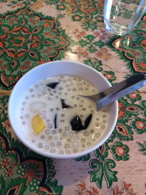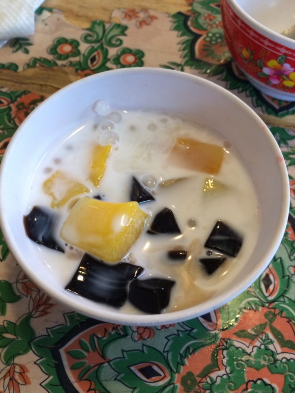 たくさんあるフルーツやらお豆やらゼリーやらいろいろを適当にとってココナッツミルクをかけて食べる。