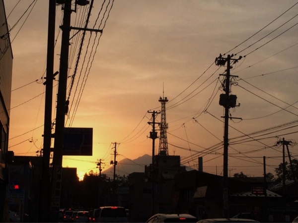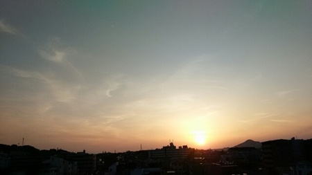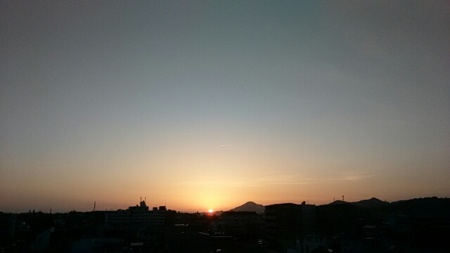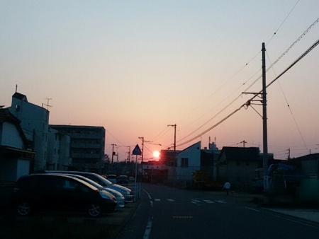 昨日と同じ信号の道で、信号よ赤くなれと願いつつ走っているとほんの少しずれて沈んで行きました。