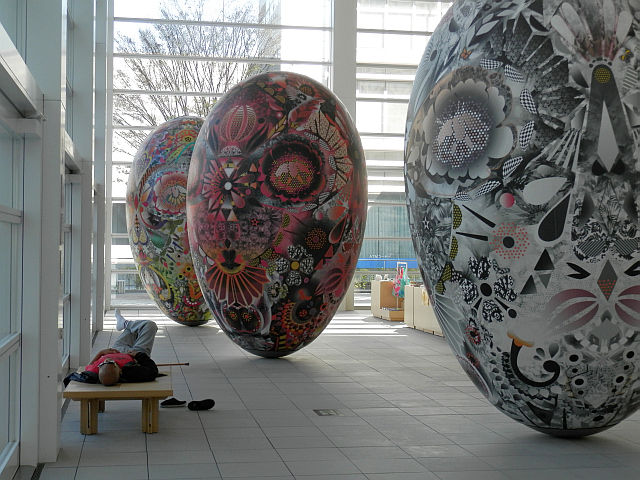 ふないアクアパークのデコレーションケーキ型トイレ、何かアート関係のイベントの名残りみたいですね。