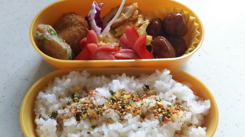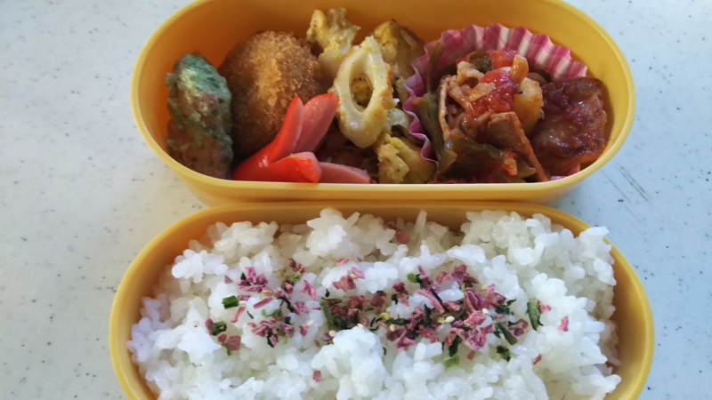 ひとつはしらすとしょうがのまぜごはんで、もうひとつは紫蘇をつかった紅しょうがのまぜごはん。おいしかった。この紅しょうがが気に入った。