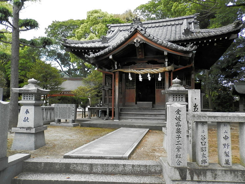 道後温泉を開いたとされる大己貴命と少彦名命を奉る神社です。湯月あるいは湯築という地名にしてもそうですが、道後は昔から温泉に縁のある土地だったんですね。