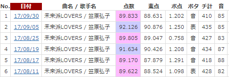 そんな感じでDXでは初めて歌った笠原弘子「未来派LOVERS」で良い点が取れたので、これをDX-Gで歌って公開しました。