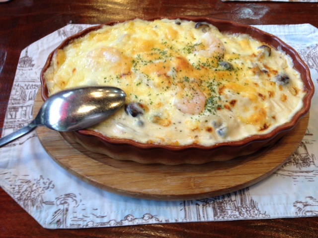 干し肉の炒め物と、aipim(キャッサバ)というお芋のフライ♪ お肉も、お芋も、美味しい~。